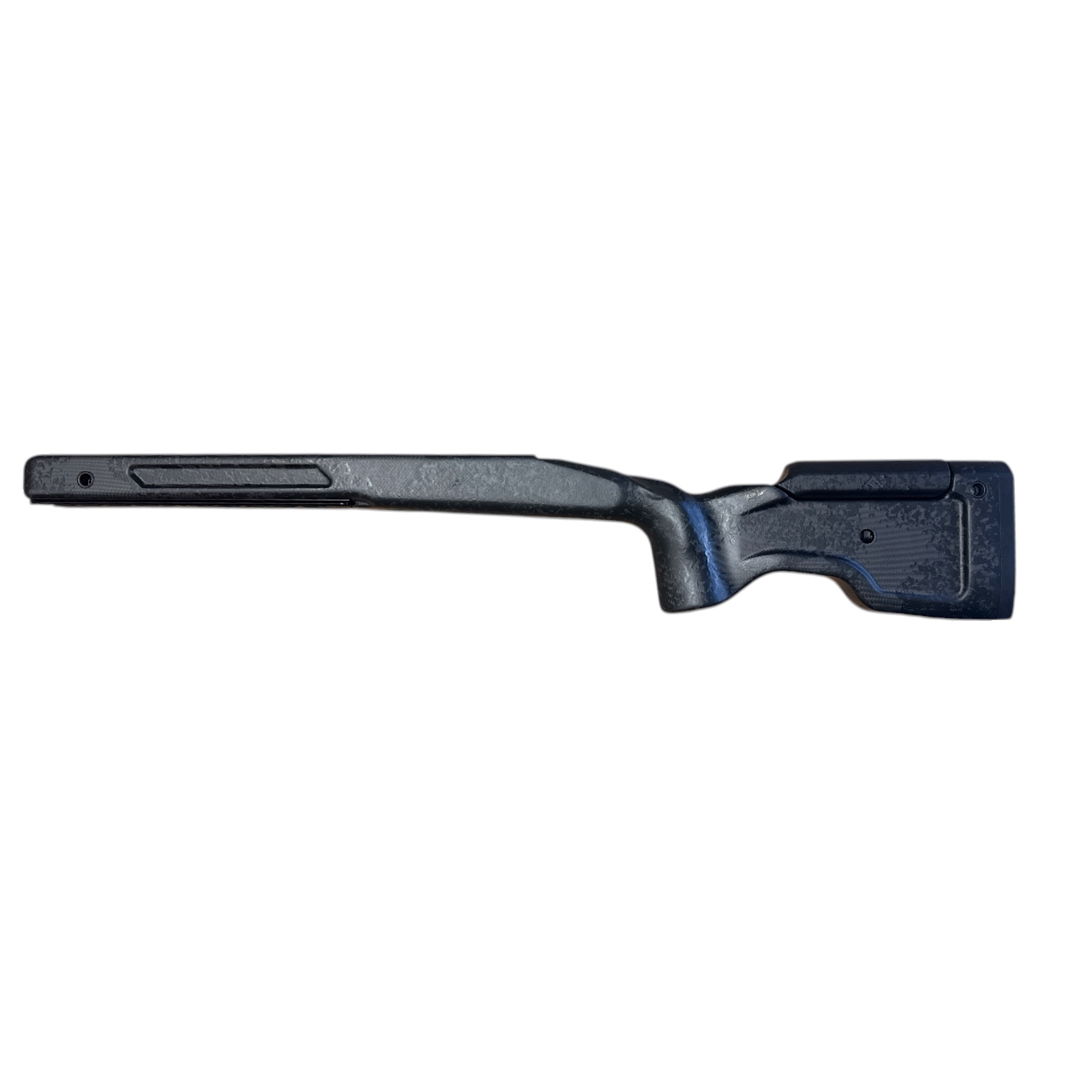 Our Hybrid line features a unique pairing of Micarta, Carbon Fiber and Aramid Fiber (commonly known as Kevlar). Carbon fiber provides the stock extreme stiffness while the aramid fiber supplies excellent torsion and dampening performance and assures high impact strength. Using this in conjunction with our micarta bedding block has given us an extremely stiff, impact resistant stock with unique dampening characteristics.